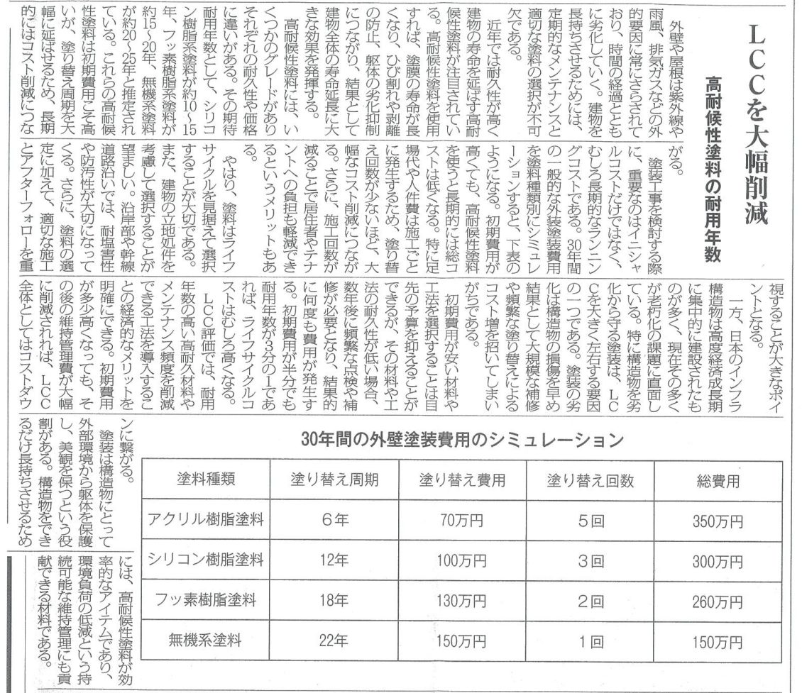 新聞にも掲載された「高耐候塗料の耐用年数」に関する記事をご紹介します。