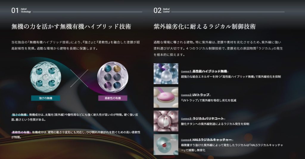 紫外線による劣化を抑える「ラジカル制御技術」を組み合わせた
