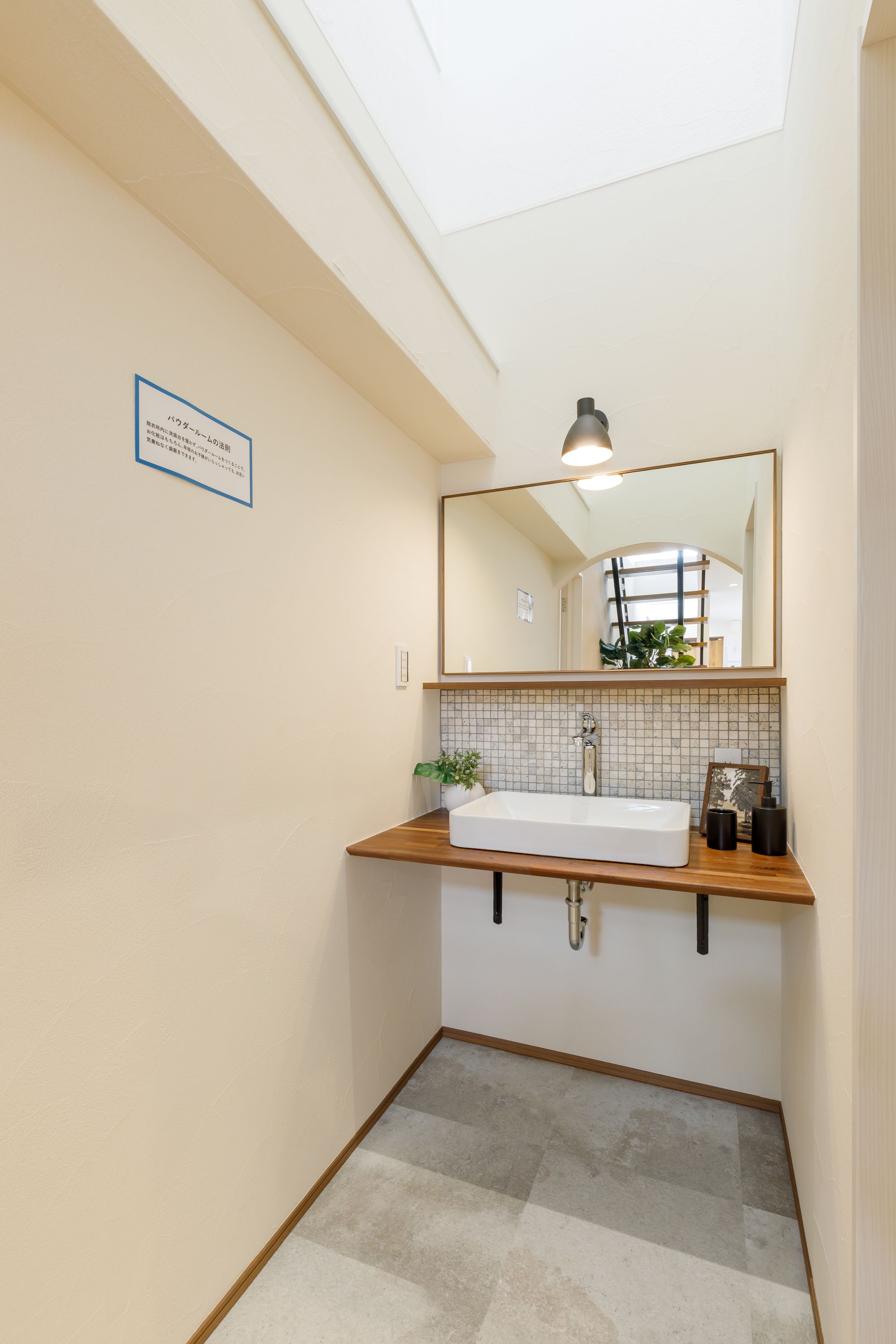 限られたスペースを有効に使いながらも、デザイン性を妥協しない洗面コーナー。