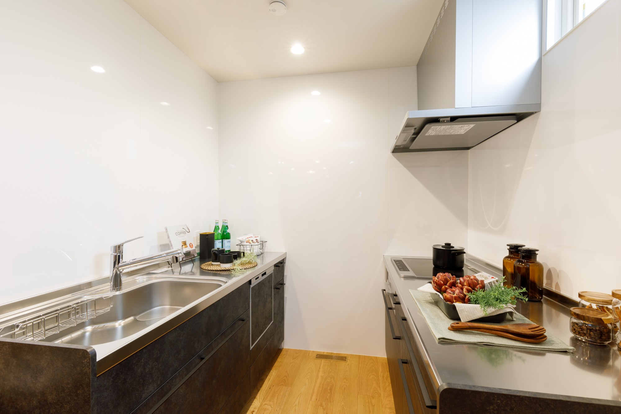 動線がシンプルで作業効率も高く、日々の料理が快適に楽しめる空間です。