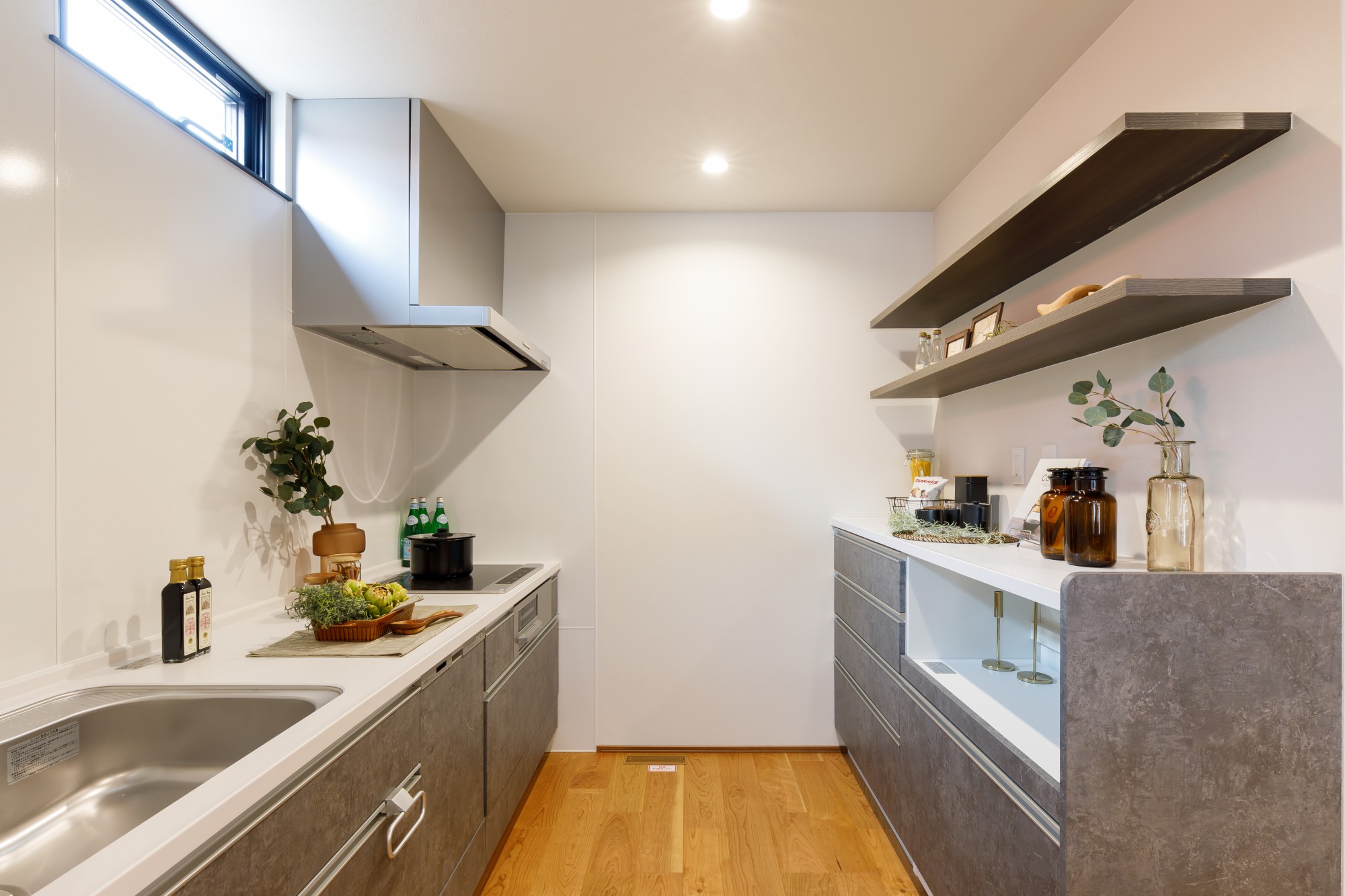 広めの調理スペースとオープン棚を採用し、収納力と作業効率を高めました。
