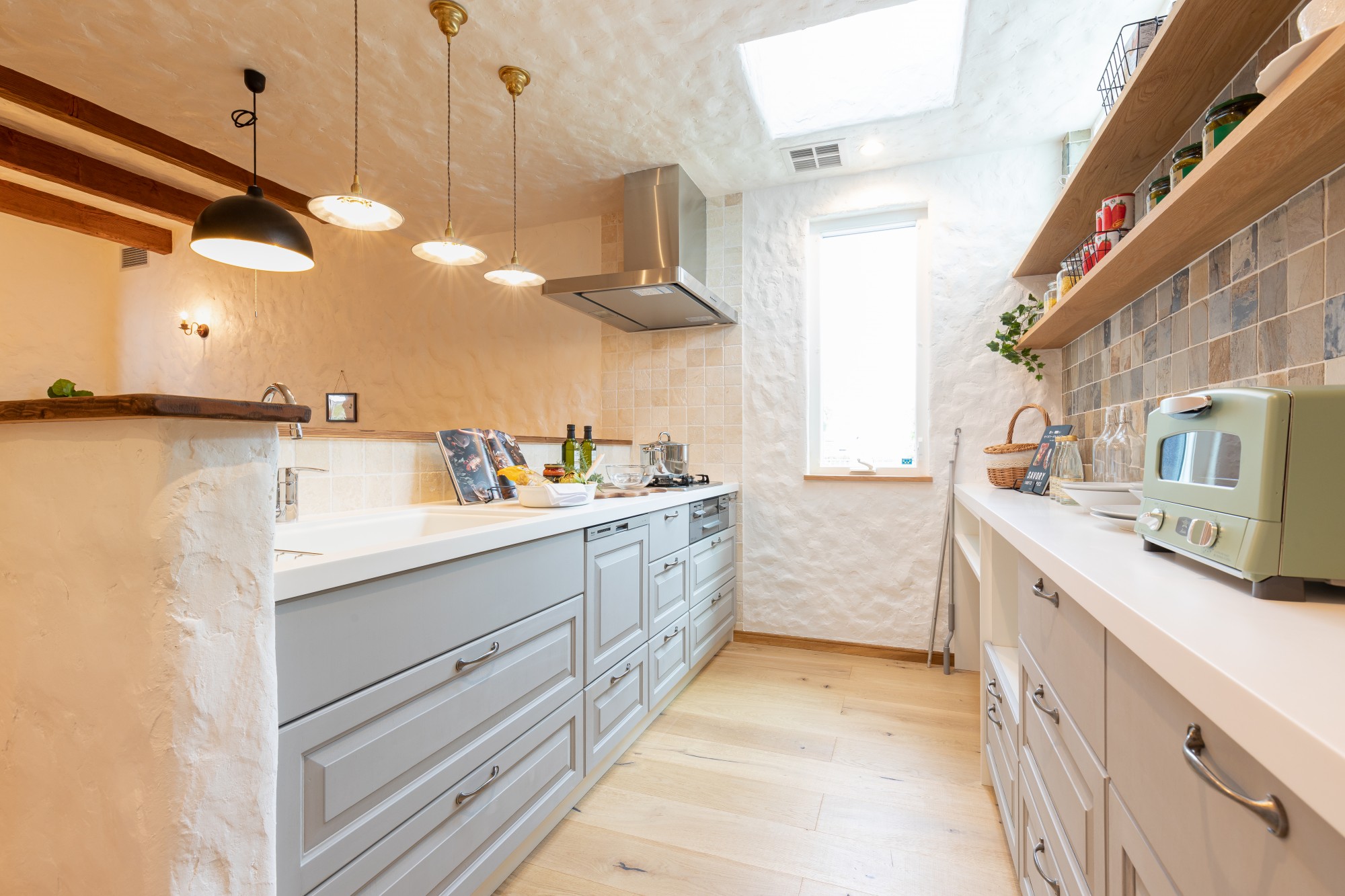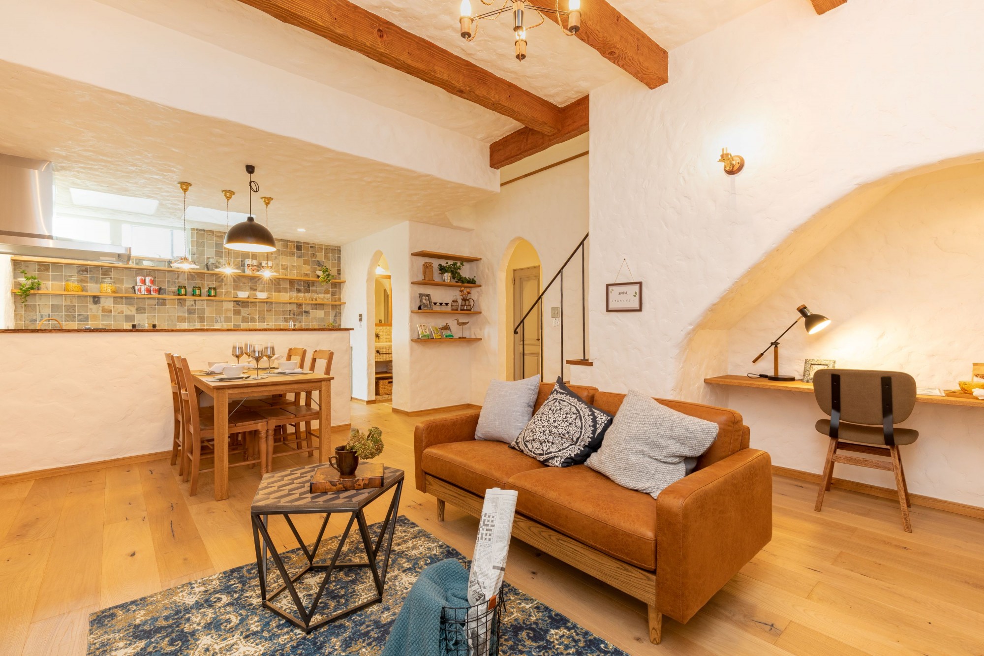 塗り壁や木の質感を活かしたデザインが、温かく上品な印象を与えます。
