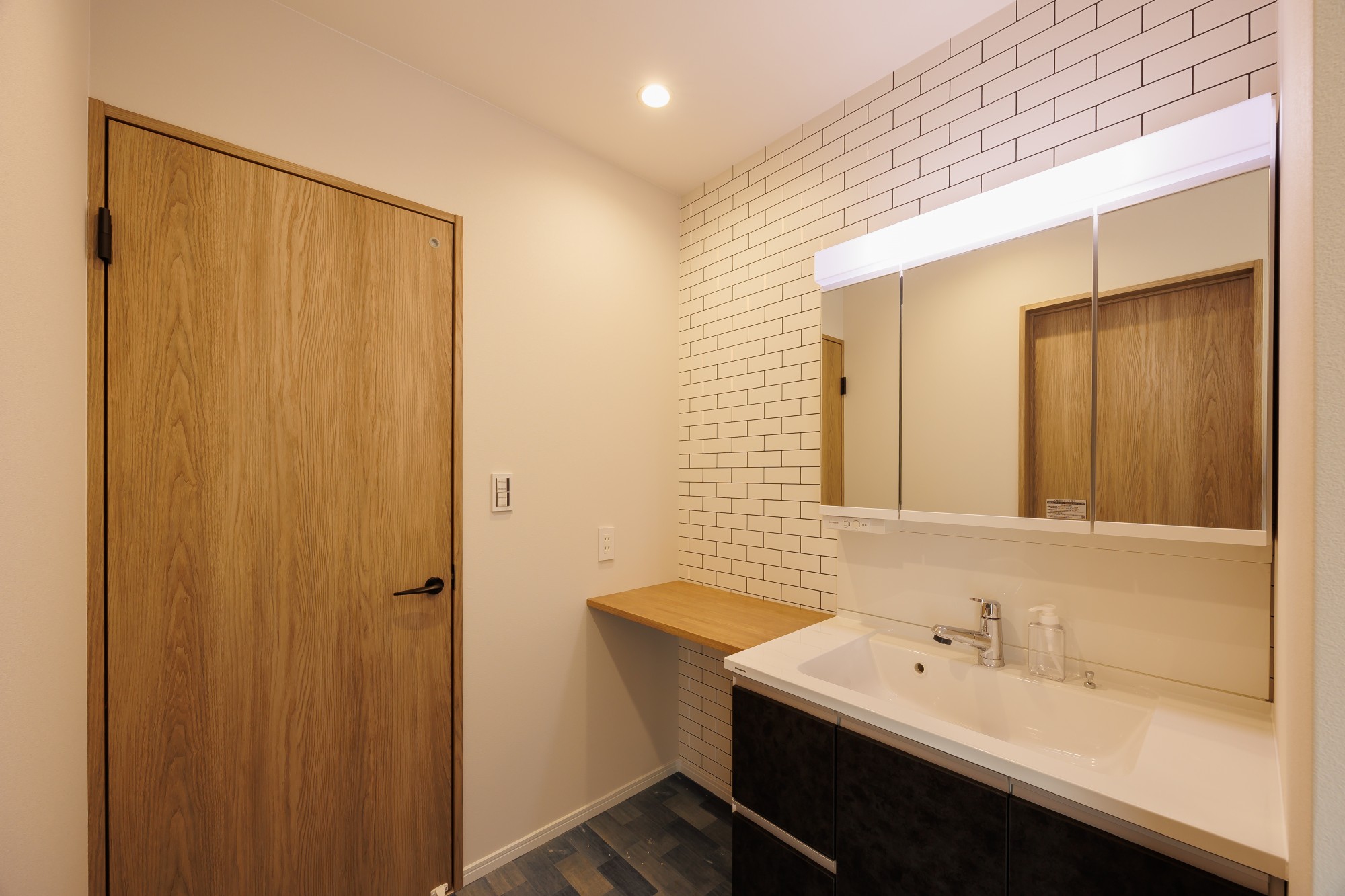 横に設けたカウンターは、身支度や洗濯物の一時置きにも便利な使い勝手の良い設計です。
