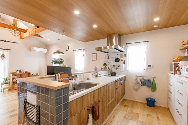 キッチンの腰壁には拘りのタイルでアクセントを♪