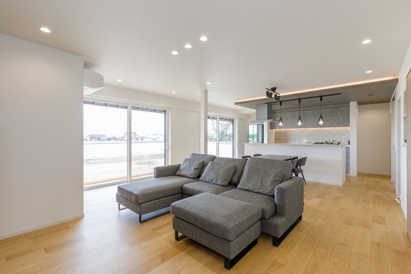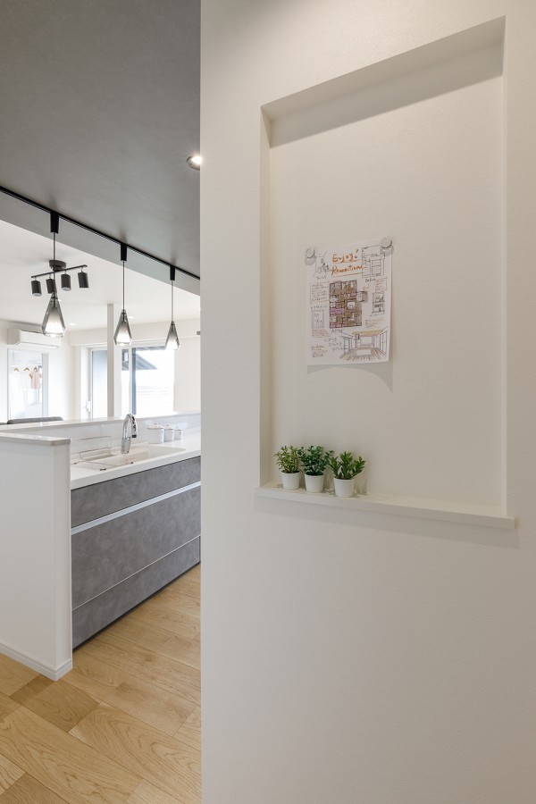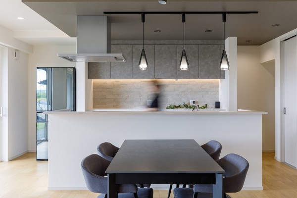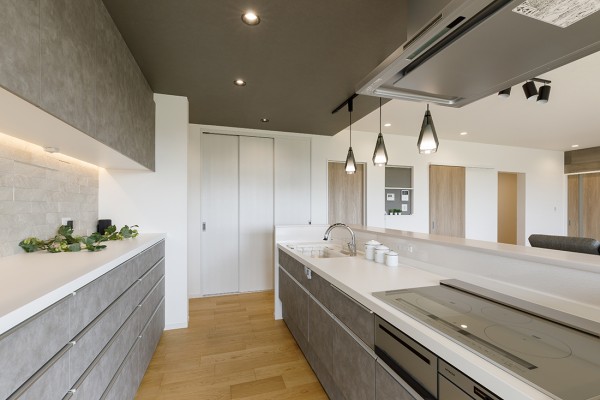 間接照明やタイルなどもこだわり、スタイリッシュでモダンなお家に。