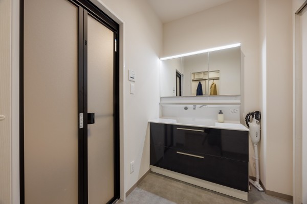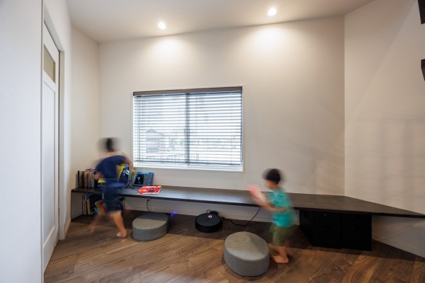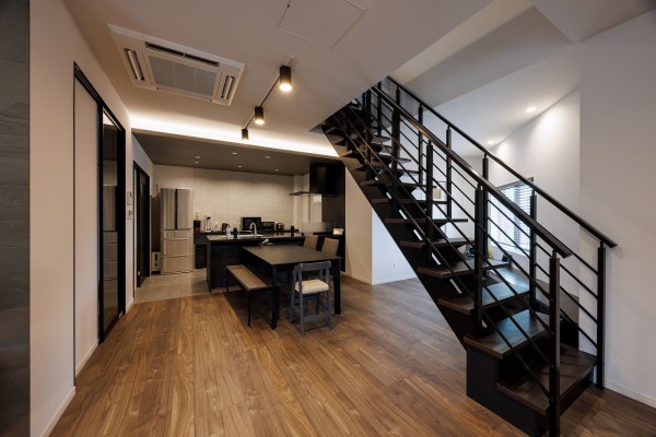 元々工場だった、変形なお家を活かした間取りプランで、グレーを基調としたカッコイイお家に。元々広いお家でしたが、すれ違っても余裕のある動線を確保して更に過ごしやすいお家になりました。