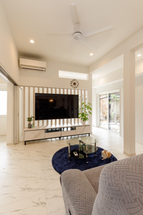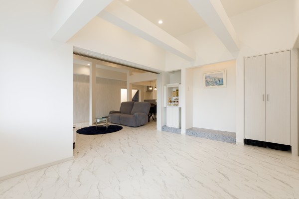 モダンな雰囲気に、というテーマにぴったりの大理石調のフローリングは、ペット対応フローリングという点もポイントです。