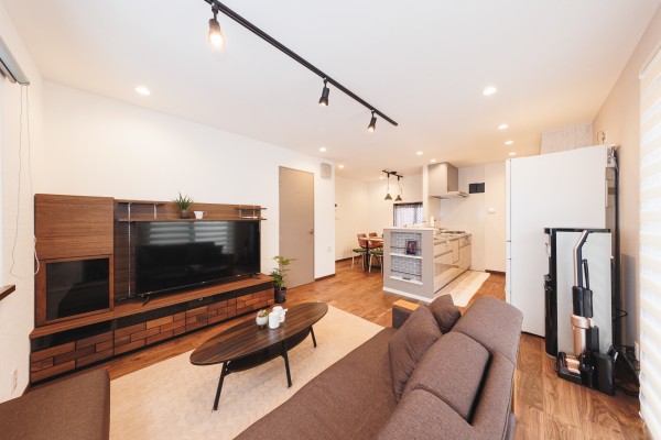 壁付けのキッチンを対面キッチンに変更。ダイニングとリビングを分けることでより広く感じるLDKにしました。
