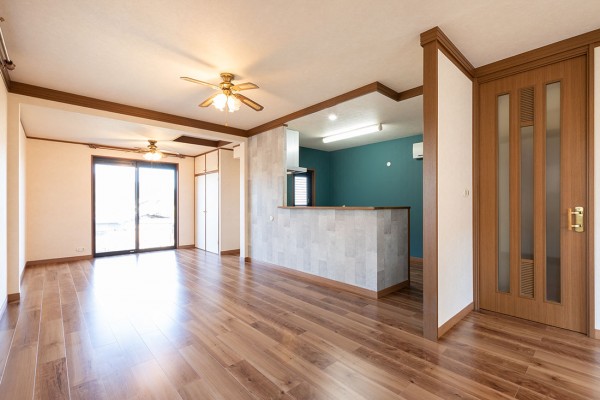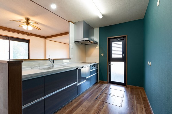 LDKの特にキッチン廻りがお家の中心になる事を考えてシステムキッチン周辺をキレイに改修しています。